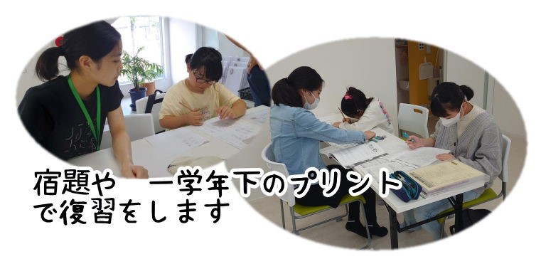 いーとの家に着いたら、必ず勉強をします。わからない問題はお友達と一緒に考えたり、ボランティアさんに教えてもらうこともあります。 |