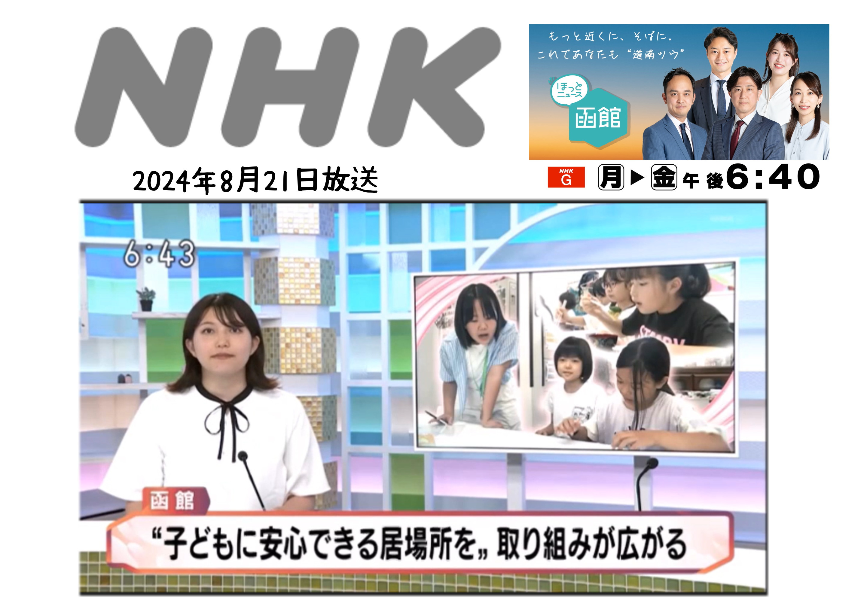 NHK :ほっとニュース函館「”子どもに安心して利用できる居場所を”取り組みが広がる」
