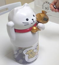 可愛らしい招き猫が、投入した金額を自動計算してくれています。